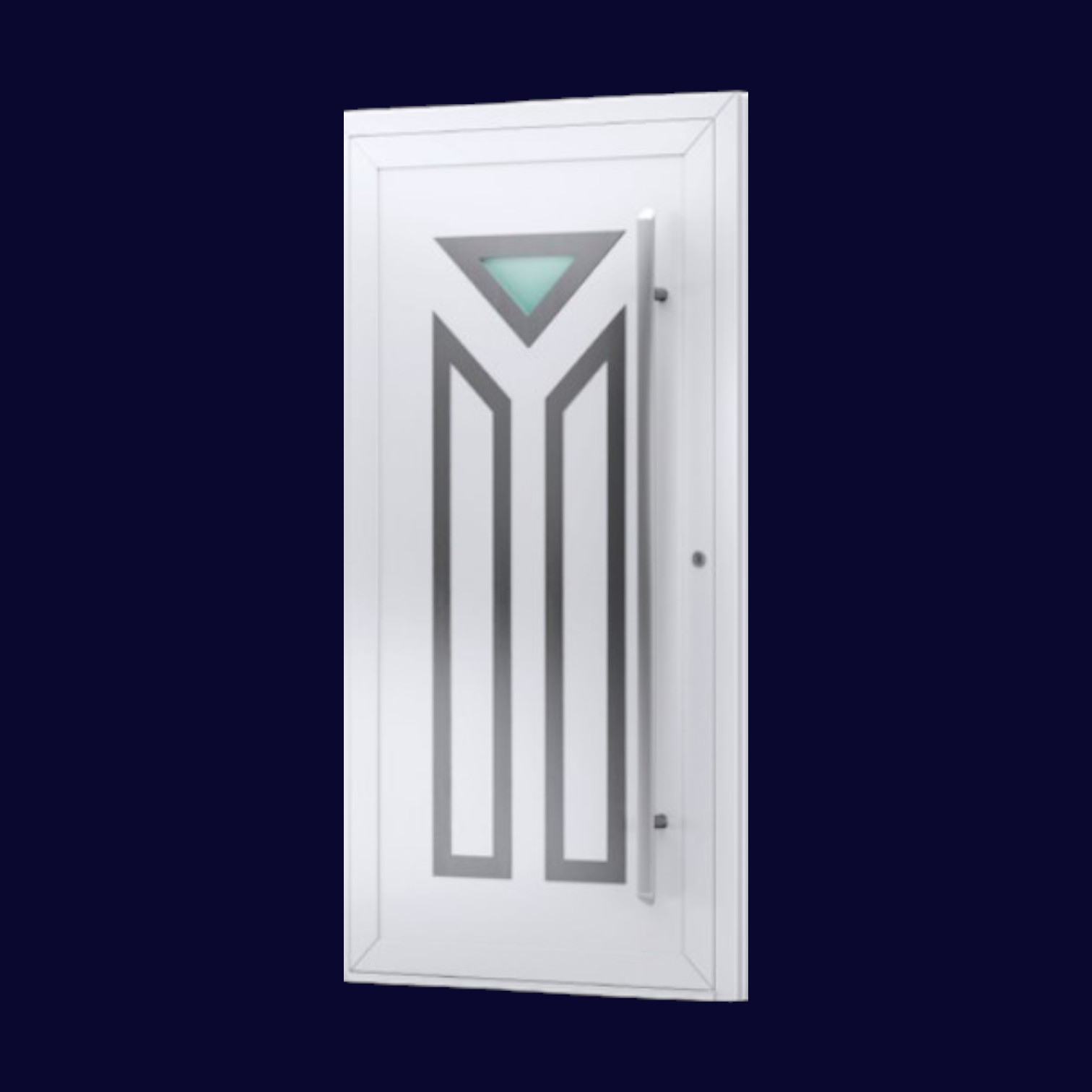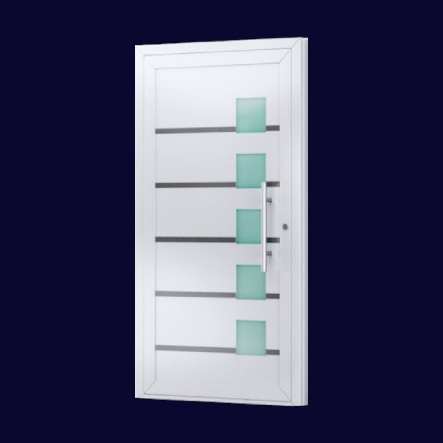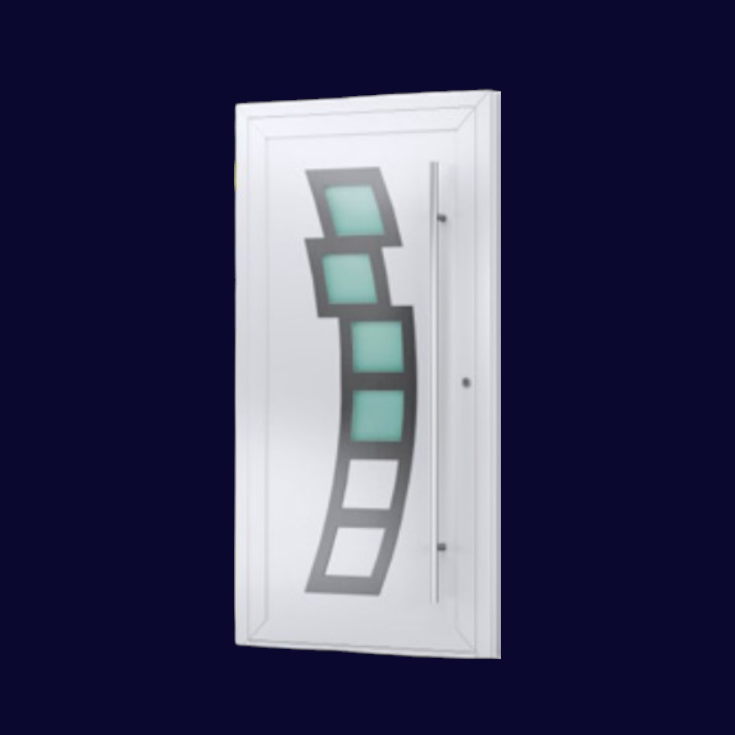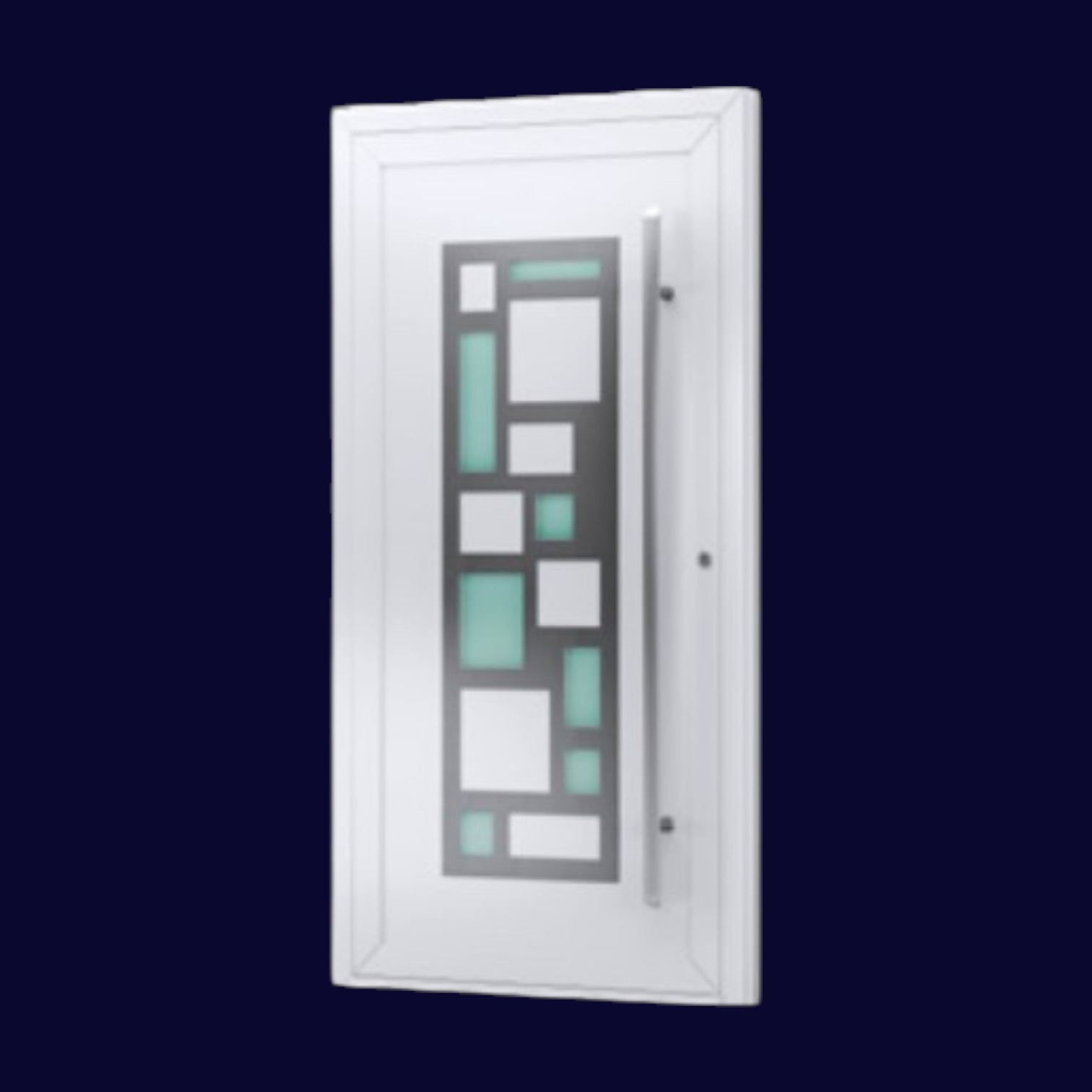 Linee geometriche, forme moderne e lavorazioni traforate si combinano con diverse tipologie di vetro, creando giochi di luce e contrasti che rendono ogni portoncino un pezzo esclusivo.