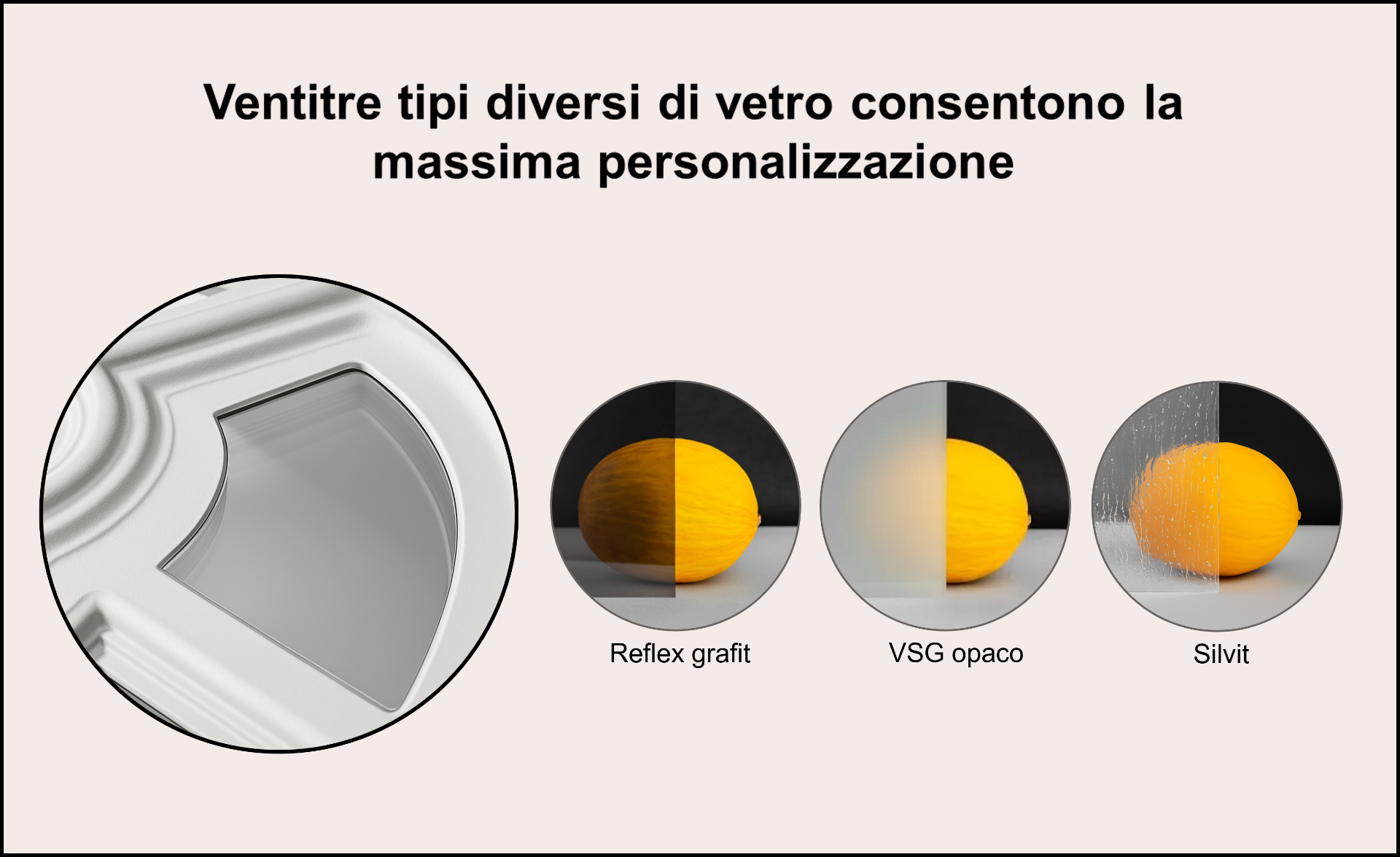 •53 modelli di portoncini. •23 tipologie di vetro per luce e privacy. •Inserti in acciaio inox •