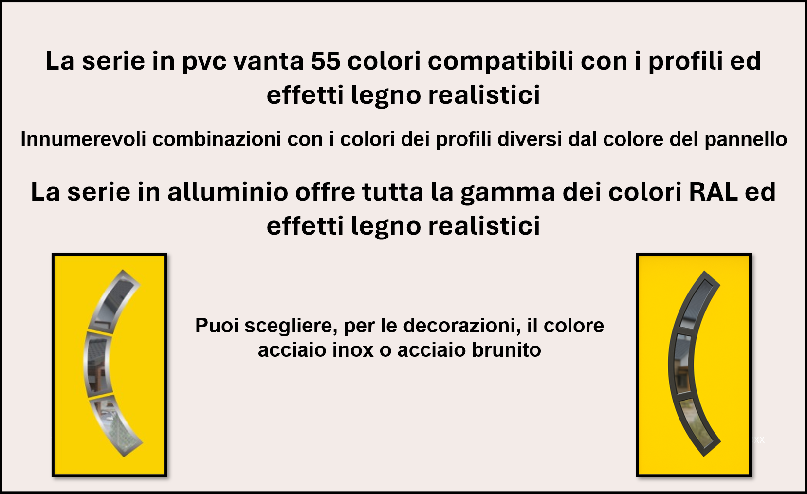 Per un tocco distintivo puoi combinare un colore diverso per il profilo del telaio e il pannello.