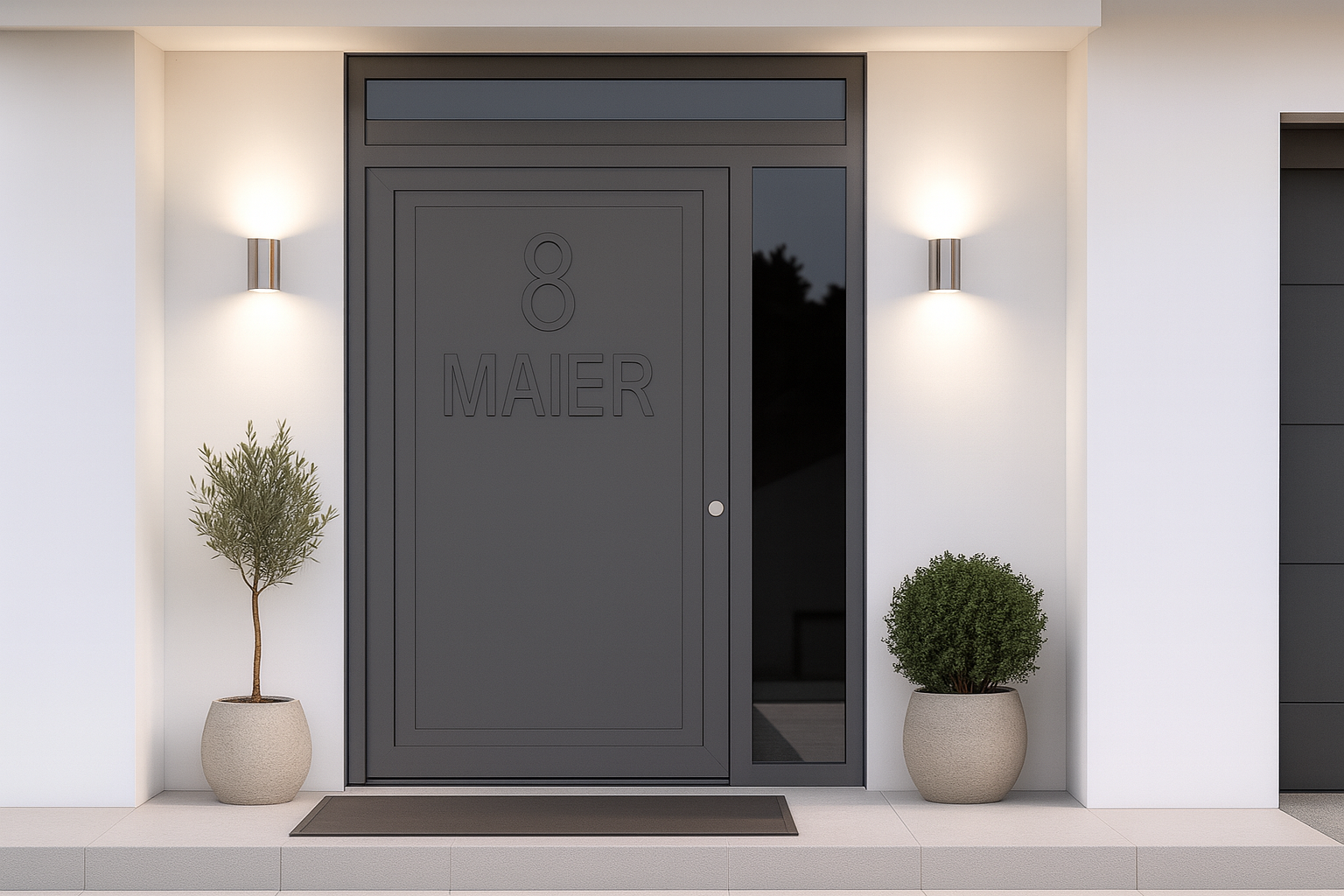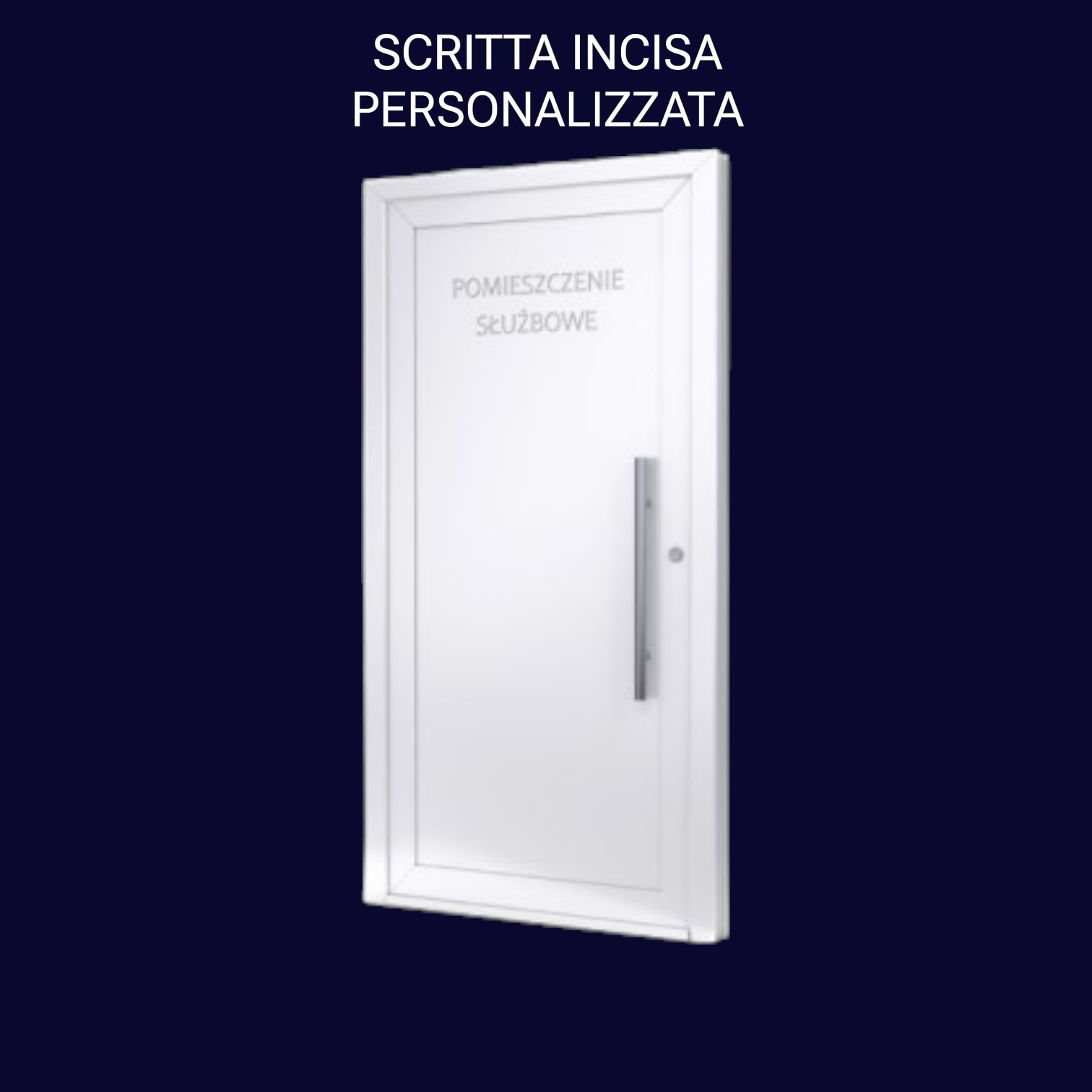 EXTRA LINE è particolarmente apprezzata da chi desidera un ingresso distintivo: dal logo aziendale inciso con precisione al numero civico fresato direttamente sul pannello, ogni dettaglio può diventare un segno di identità.