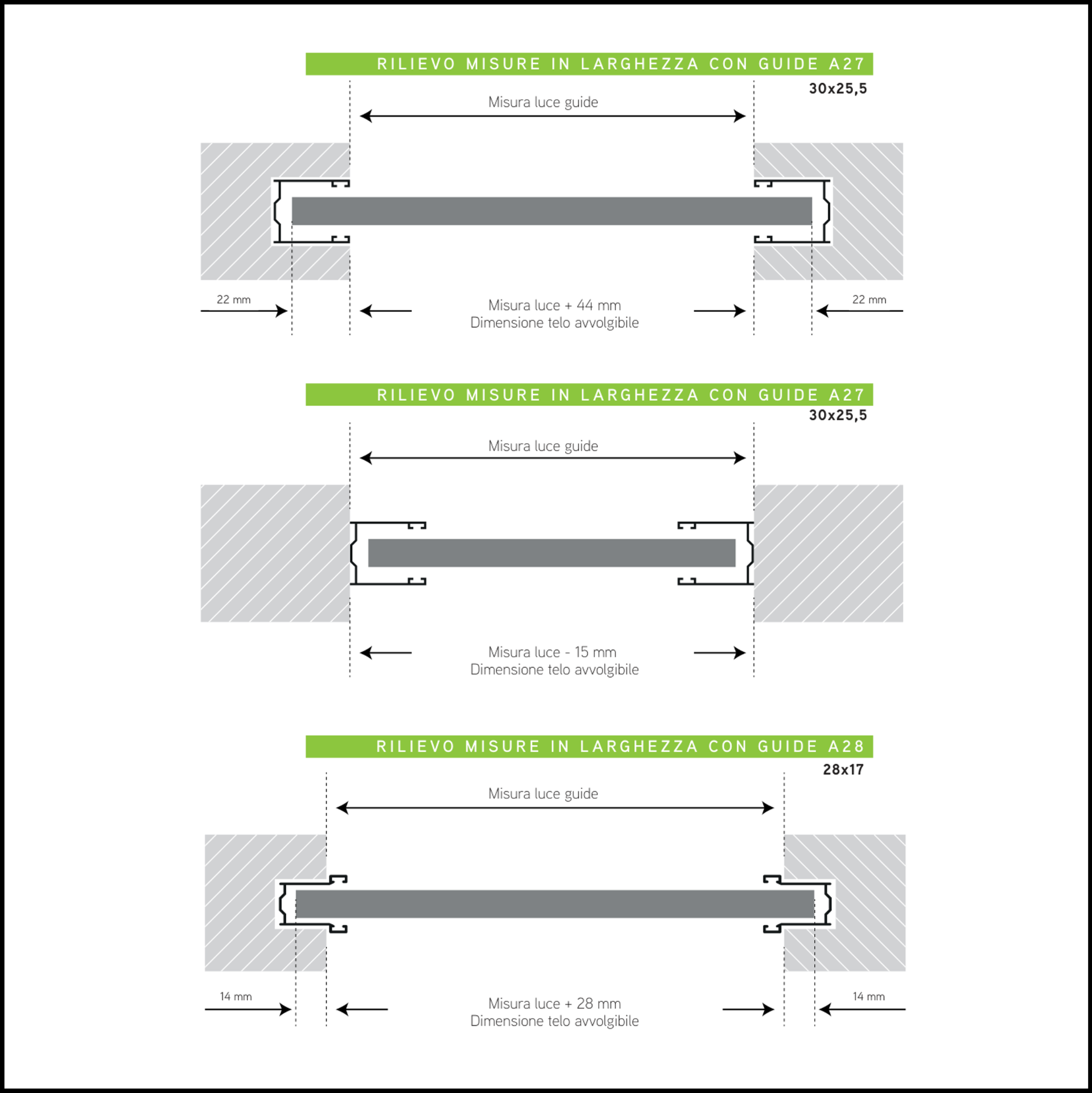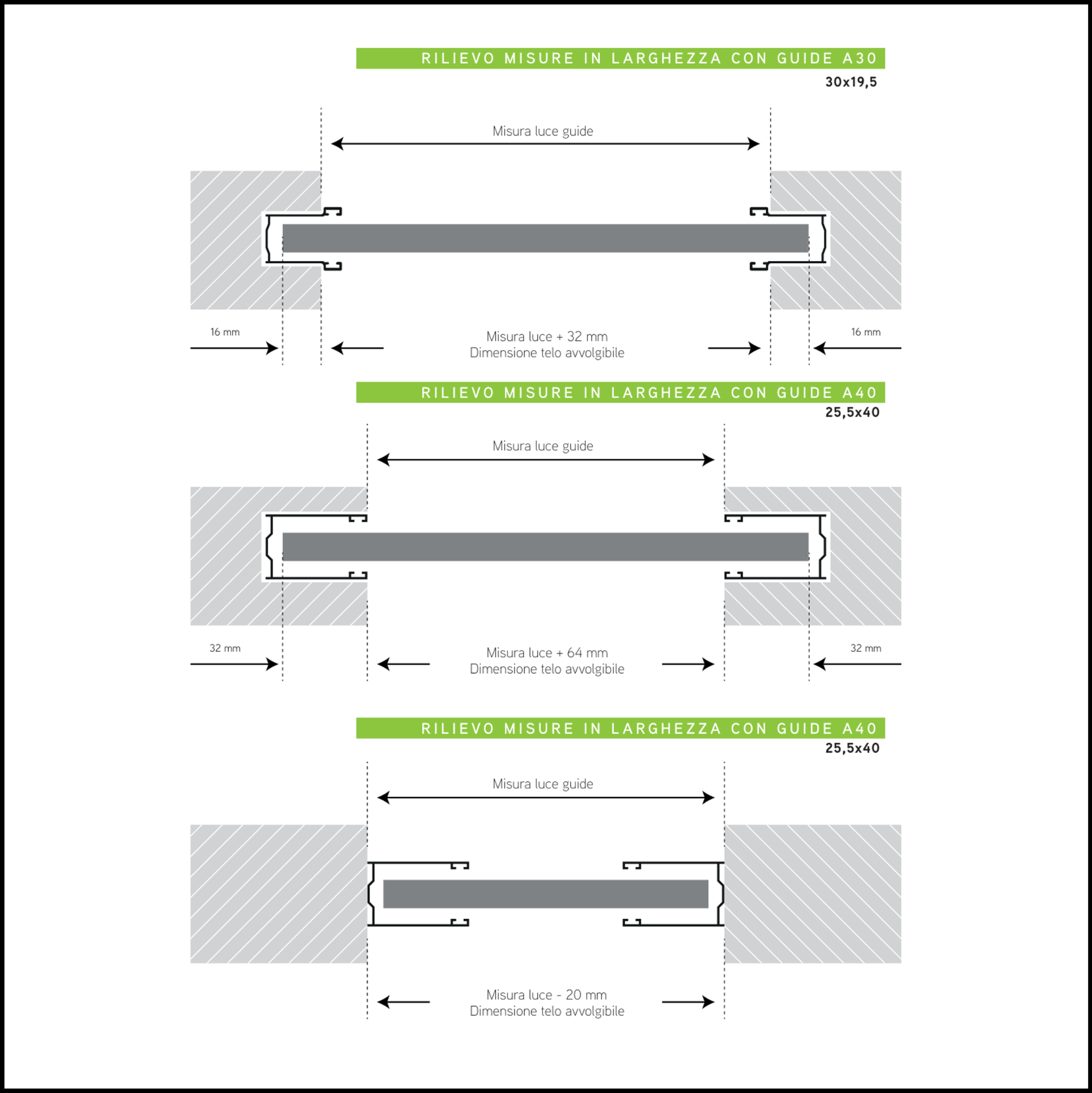Quando si sostituiscono sia il telo che le guide, le misure si prendono rispetto alla muratura (o al falso telaio).