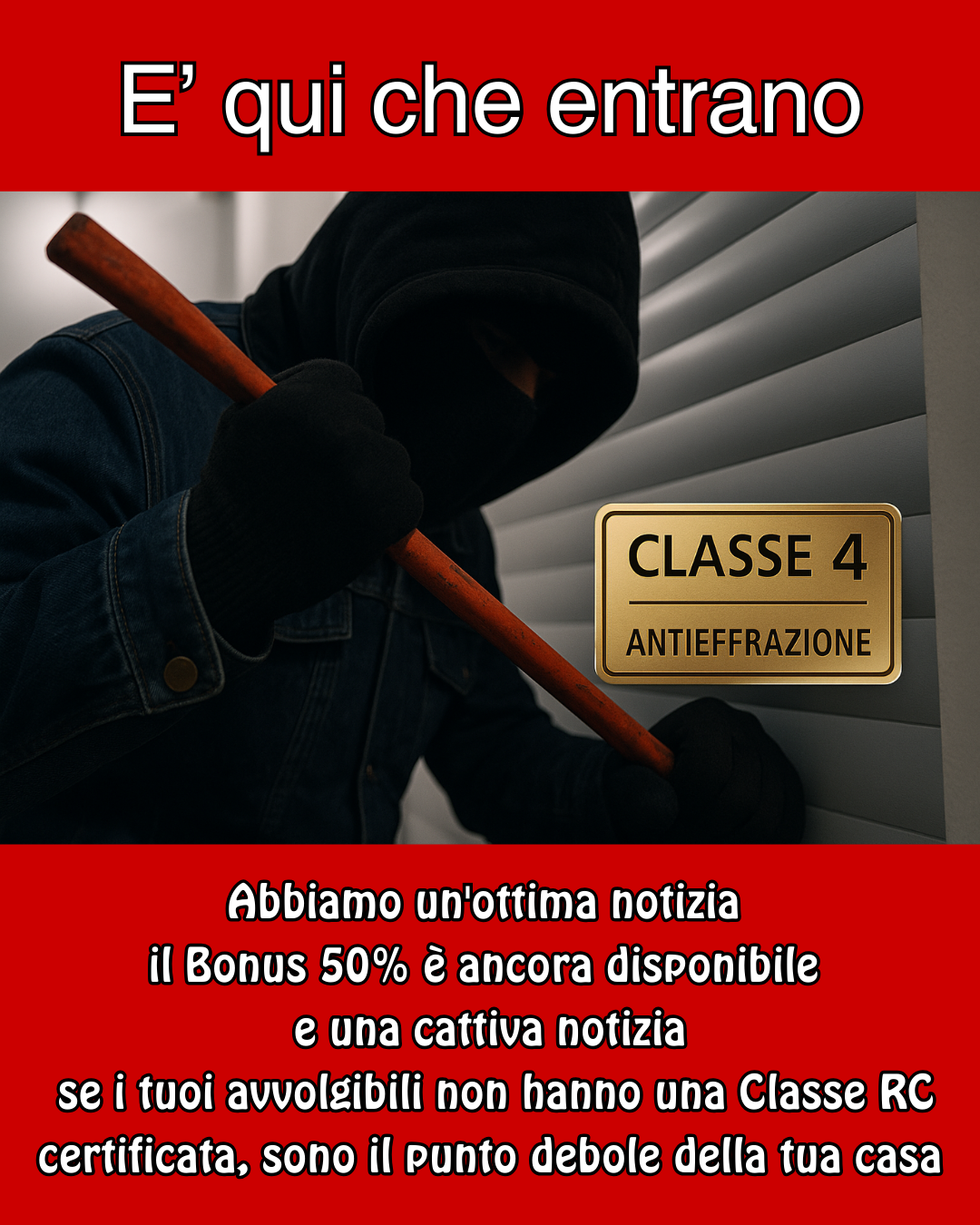 La sicurezza degli avvolgibili non si misura "a occhio" ma dalla Classe RC che il sistema completo, telo, guide, accessori e posa, può raggiungere.