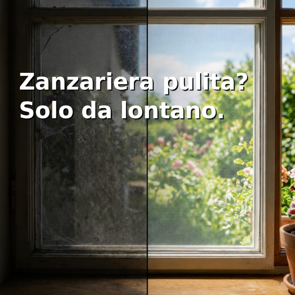 Le zanzariere, ad esempio, spesso sembrano pulite finché non le si guarda bene in controluce: sulla rete si accumulano polvere, pollini, piccoli residui e ragnatele leggere che, con il tempo, riducono la luminosità, ostacolano il passaggio dell'aria e fanno apparire la finestra meno curata.