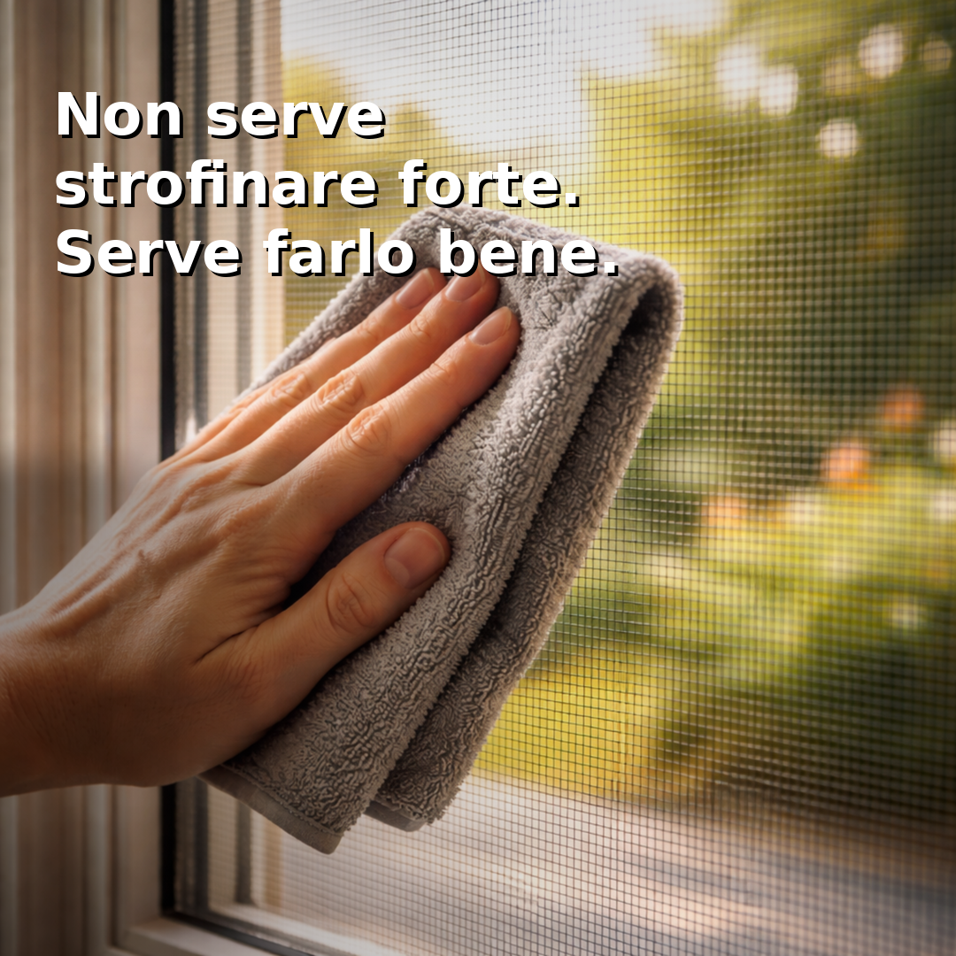 Una zanzariera pulita solo "a metà" continuerà a dare una sensazione di trascuratezza, anche se la rete appare sistemata.