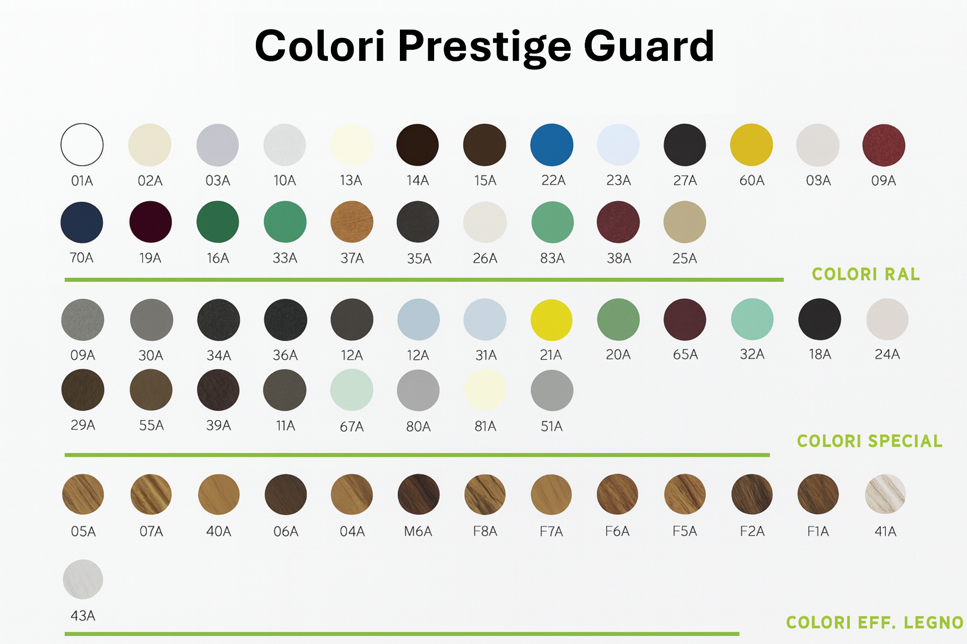 Qui sotto trovi la gamma colori PrestigeGuard