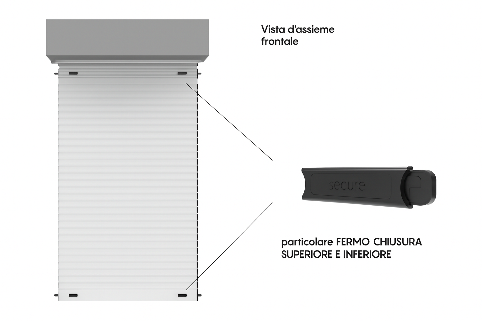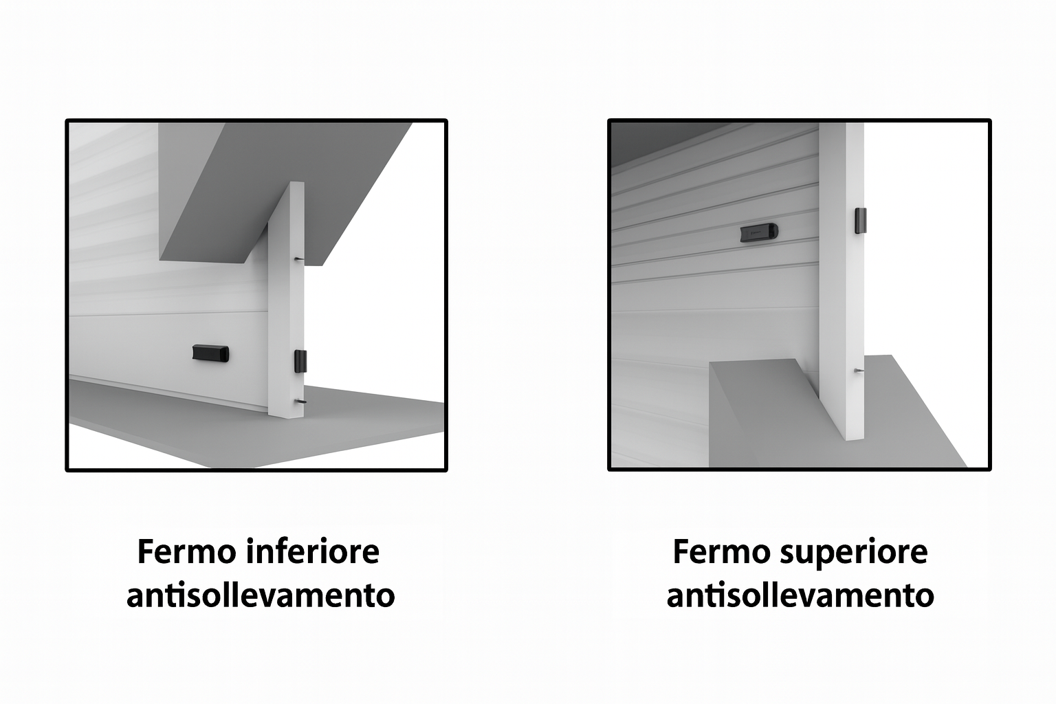 predisposizione per serratura o catenacciolo montato sulla fascia terminale, per garantire una chiusura sicura e limitare il sollevamento dall'esterno.
