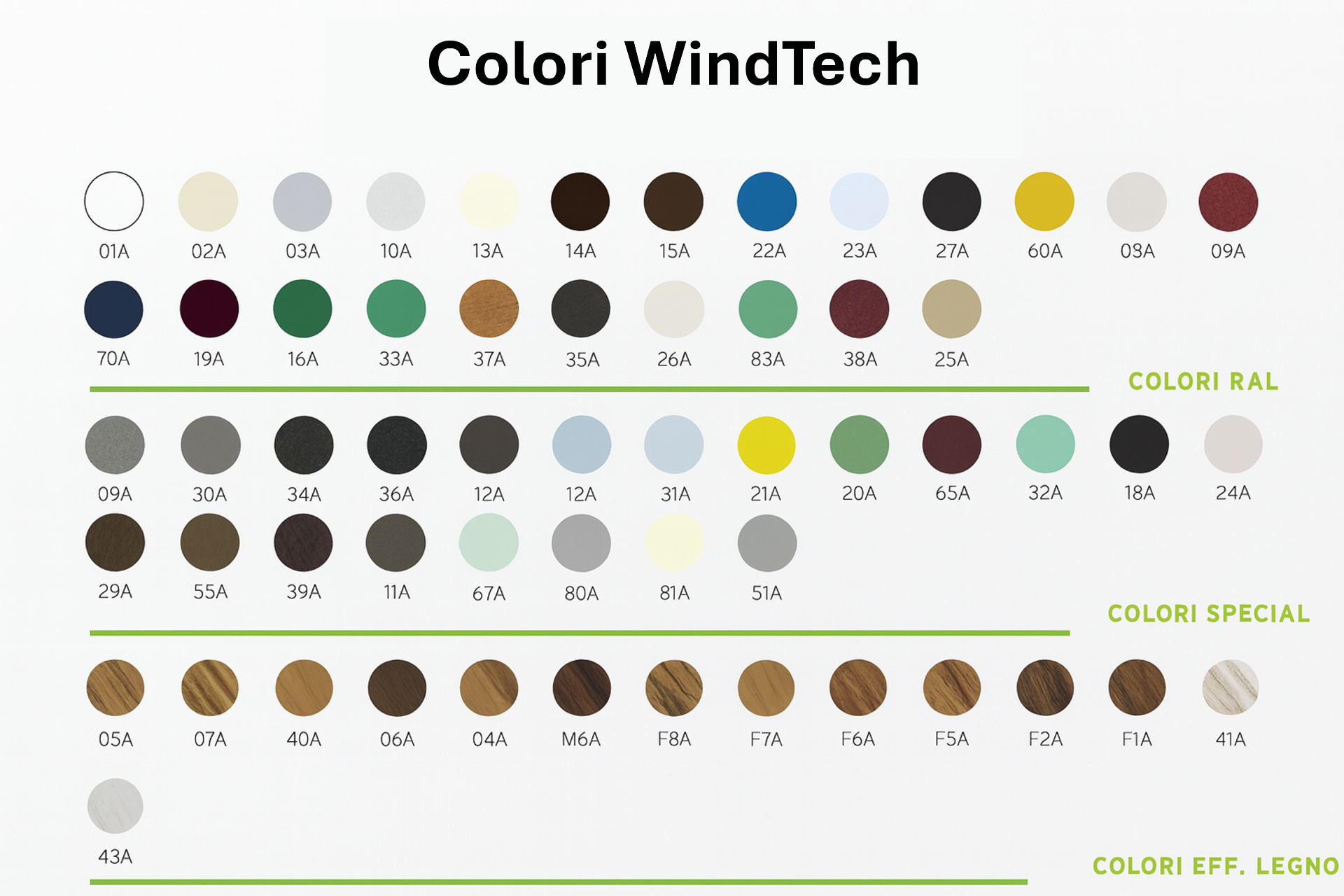 è disponibile in una gamma di colori pensata per integrarsi con le facciate condominiali esistenti e con i progetti di ristrutturazione più recenti. Puoi scegliere tra tinte neutre, tonalità più decise e finiture effetto legno, così da coordinare le tapparelle con infissi in PVC, alluminio o acciaio senza strappi estetici.